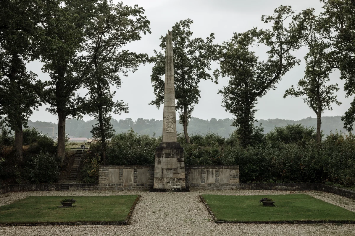 Das mit dem Vergessen ginge schon deshalb nicht, weil da an der Bundesstraße 12 groß und quadratisch dieses Mahnmal steht, mit dem in den Himmel weisenden schlanken Obelisken. Darauf ein stilisierter Gefangener hinter Stacheldraht abgebildet, ein Wachturm im Hintergrund, zwei Jahre nach Kriegsende errichtet von den ehemaligen Gefangenen.