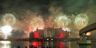 Mit dem größten Feuerwerk aller Zeiten ist am Donnerstag abend die künstliche Ferieninsel "Palm Jumeirah" eröffnet worden. Angesichts schwindender Ölreserven setzen die Scheichs verstärkt auf Tourismus.