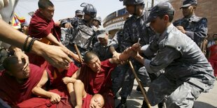 Chinesische Sicherheitskräfte gehen erneut gegen tibetische Protestierende vor. Auch in Nepals Hauptstadt wird eine Demonstration mit Tränengas und Schlagstöcken aufgelöst.