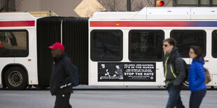 Mit einem Hitler-Bild bedruckte Busse sollen in den USA auf islamischen Antisemitismus aufmerksam machen.