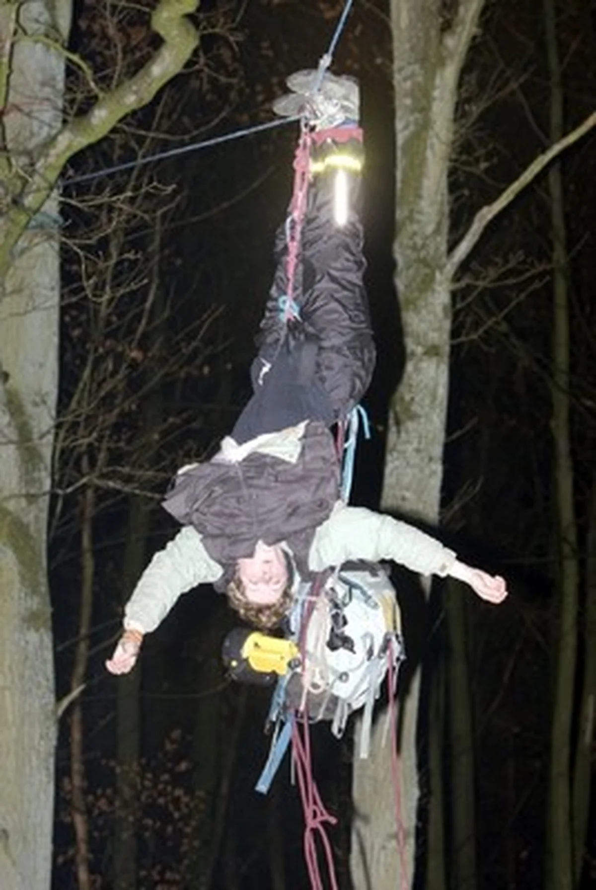 Nach Angaben von Atomkraftgegnern, die durch den Suchscheinwerfer des Hubschraubers auf den Vorgang aufmerksam wurden, waren die vor Ort eintreffenden Polizisten zunächst ratlos. Nach Angaben der Polizei dauerte es sechseinhalb Stunden, bevor es in der Nacht gelang, die Frau mit Hilfe von Spezialkräften aus den Seilen zu holen - und vorläufig festzunehmen. Gegen zwei Uhr nachts konnte der Zug seine Fahrt von der Urananreicherungsanlage in Gronau Richtung Rotterdam wieder aufnahmen.