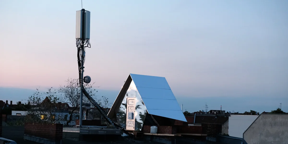 In Wahrheit ist das Haus, das Jakob Wirth gemeinsam mit Alexander Zakharov (der seinen echten Namen nicht in der Zeitung lesen will) gebaut hat, weder das eine noch das andere, sondern wurde von ihnen „Penthaus à la Parasit“ getauft. Vor einer Woche haben die beiden Künstler und Aktivisten 450 Kilo Kanthölzer, Schrauben, Bretter und Folie auf dieses Dach geschleppt und das Haus nach eigenem Bauplan zusammengesteckt und verschraubt. Ohne Genehmigung, aber aus Kulturmitteln gefördert, wie Wirth berichtet.