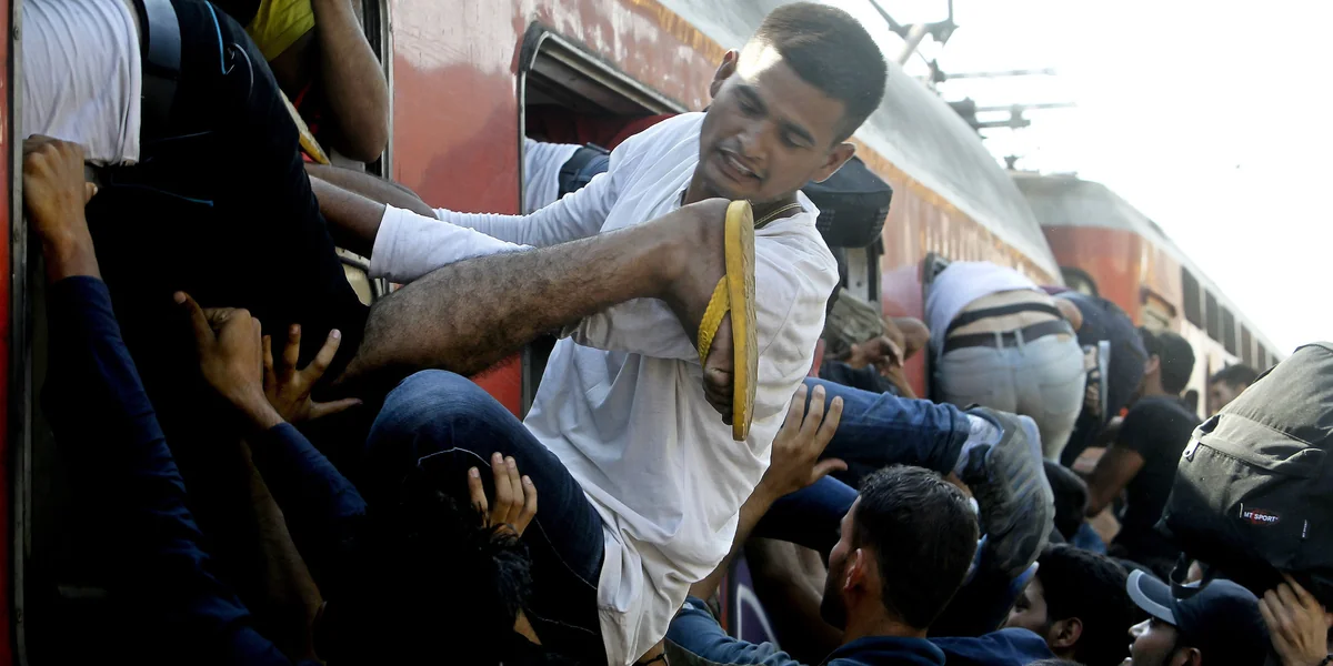 Grenzpolizisten schauen zu, während so viele wie möglich in die Züge steigen, die sie für 10 Euro nach Tabanovce an der serbischen Grenze bringen. Dort angekommen, zeigt man ihnen, in welcher Richtung Serbien liegt – und sie marschieren los.