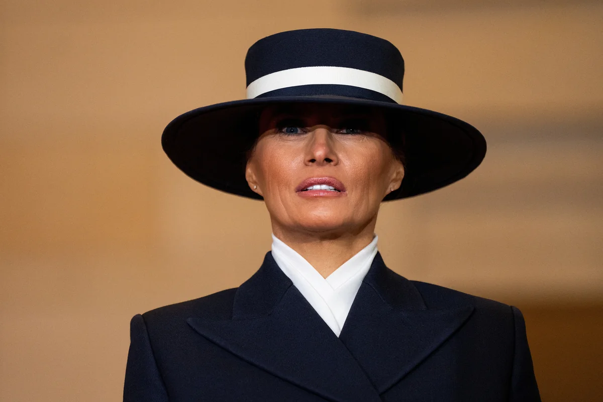 Melania Trump kam zur Inauguration ihres Mannes im Gangsterlook. Am auffälligsten: ihre Kopfbedeckung. Trug sie damit die Demokratie zu Grabe?