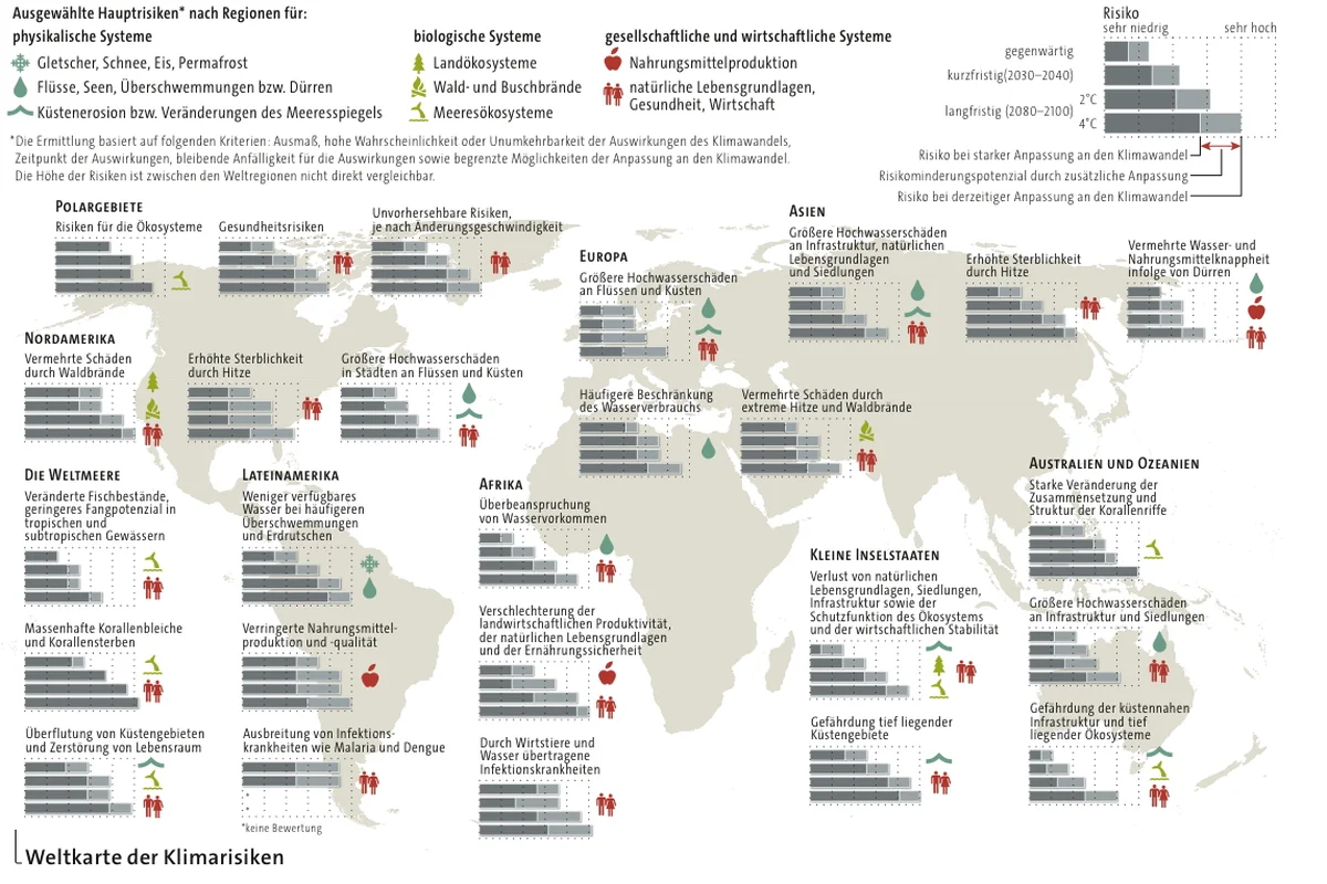 Bereits heute zeigt sich, dass der Klimawandel Ökosysteme gefährdet und die landwirtschaftliche Produktivität verringert. Ein Ansteigen der globalen Durchschnittstemperatur um 4 Grad Celsius oder mehr birgt zahlreiche Risiken: höhere Meeresspiegel, häufigere Extremwetterereignisse, Dürren, Klimaflüchtlinge, Ausbreitung von Krankheiten und Rückgang der Artenvielfalt.