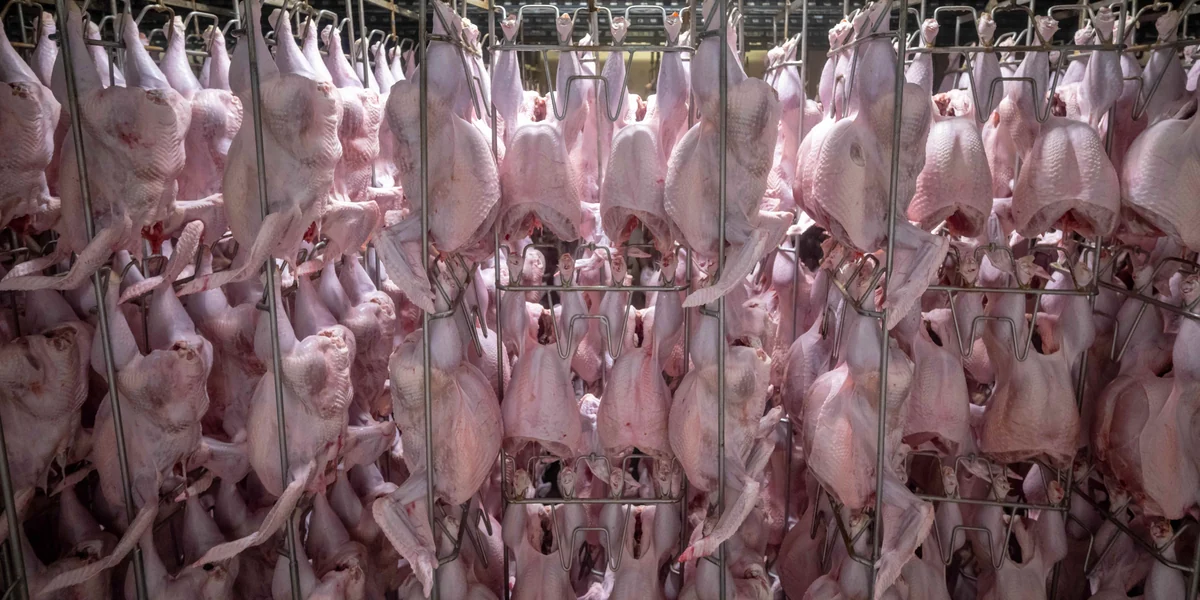 Güllegürtel wird diese Gegend südlich von Oldenburg genannt, weil es hier, in den Landkreisen Cloppenburg und Vechta, die deutschlandweit höchste Dichte an Massentierhaltungsbetrieben gibt. Diese Tiere müssen weiterverarbeitet werden. Mehr als 14 Millionen Puten werden pro Jahr bei Heidemark in Ahlhorn geschlachtet, zerteilt und verpackt, von rund 1.300 Mitarbeiter:innen. Eine von ihnen war Georgescu, die eigentlich anders heißt, aber aus Angst vor Konsequenzen seitens Heidemark anonym bleiben möchte.