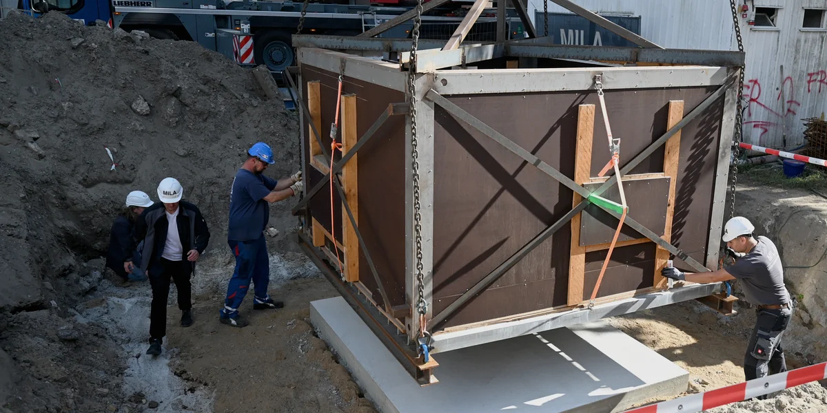 2016 wurde sie bei archäologischen Ausgrabungen auf der Fischerinsel in Mitte entdeckt, dann wegverfrachtet und zwischengelagert, seit Mittwochvormittag ist sie wieder am alten Ort zurück, vorerst noch in einer Holzbox verpackt. Erst im Dezember, so der Plan, soll die Latrine auch der Öffentlichkeit zugänglich gemacht werden. Verantwortlich dafür ist die landeseigene Wohnungsbaugesellschaft Berlin-Mitte (WBM), die zurzeit nahe dem Fundort Mietwohnungen errichtet. Einen sechsstelligen Betrag hätten Restauration und Umbau laut WBM gekostet, zweieinhalb Jahre habe der ganze Prozess gedauert.