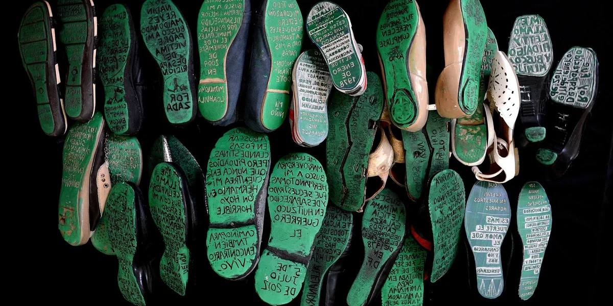 Jede Sohle erzählt von einer Geschichte. Zum Beispiel die von Letty Hidalgo: „Ich suche meinen Sohn Roy. Er ist am 11. Januar 2011 verschwunden.“ Oder die von Margarita Zacarías, der Mutter eines Studenten der Lehrerschule Ayotzinapa, der am 26. September 2014 verschleppt wurde: „Mein Sohn, ich möchte dir sagen, dass ich viel gegangen bin, um dich zu finden. Aber du sollst wissen, dass ich nicht aufgeben werde, und wenn es mich das ganze Leben kostet.“