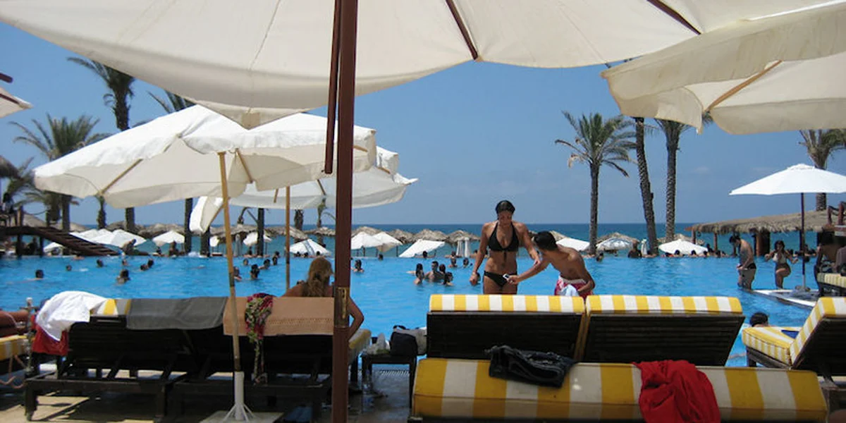 Während Deutschlands Freibadkassierer vor nichts zurückschrecken und selbst Leute mit Socken in den Sandalen reinlassen, wird an der libanesischen Privatstrandkasse rigoros ausgesiebt: möglichst sexy, möglichst schick, möglichst weiblich. Zwei Männer ohne Frauenbegleitung haben keine Chance, es sei denn, sie können per Handyanruf beweisen, dass ihre Freundinnen drinnen warten. Wahrscheinlich jedoch werden die wartenden Freundinnen von dem Anruf nichts hören, denn innen dröhnt die Partymusik. Inmitten der Strandliegen und Swimmingpools und Palmwedel steht ein DJ, dessen Aufgabe es ist, für kalifornisch-coole Atmosphäre zu sorgen: extatisch tanzende Jugendliche, ohrenbetäubende Musik, sündhaft teure Cocktails.