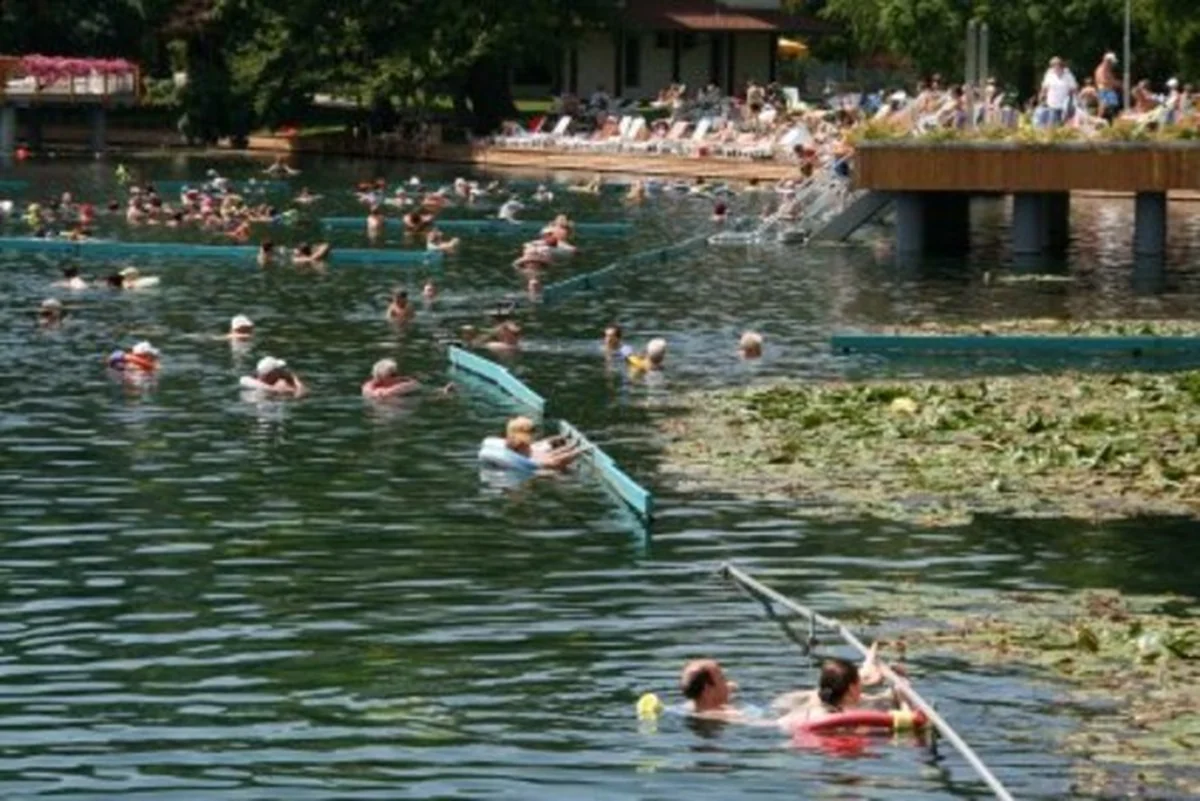 Heute ist Hévíz ein großes befriedetes Planschbecken für die Betagten. Umzäunt und mit begradigten Ufern hat der auch im Winter nie kälter als 24 Grad warme See in der Größe von gut sechs Fußballfeldern etwas von einem beheizten Freibad, würden nicht wichtige Merkmale fehlen: kreischende Kinder, Pommesgeruch, balzende Jugend und schwimmende Menschen. Allzu anstrengende Bewegung ist im leicht radioaktiven Wasser nicht empfohlen, aber keine Bange: Der Gehalt an Radiumsalzen ist so gering, dass er für Erwachsene eher gesund ist. Kinder dürfen erst ab zwölf Jahren ins warme Nass, das im Sommer fast die Temperatur der Quelle am Grund erreicht: 38 Grad. So treiben die Kurgäste in ihren Schwimmreifen hängend umher. Das Wasser ist wegen der Quelle immer in Bewegung. Manche machen an den im Grund verankerten Längsstangen fest, legen die Füße hoch, nehmen eine Sofastellung ein.