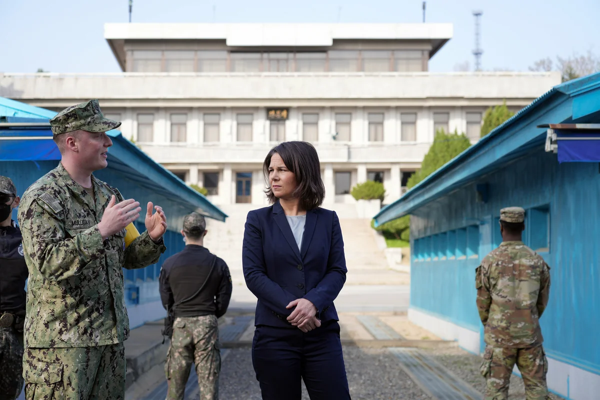 Außergewöhnlich ist der Termin nicht: Unter Tourist*innen ist der Grenzpunkt ein ebenso beliebtes Ziel wie unter Regierungsgästen. Außenminister reisen regelmäßig an, Baerbocks Vorgänger Heiko Maas war auch schon da. Aber: Der Takt, in dem offizieller Besuch aus Deutschland aufkreuzt, wird sich in Zukunft wahrscheinlich erhöhen. Erst im November flog der Bundespräsident nach Südkorea. Jetzt legt die Außenministerin auf dem Weg von Peking zu einem G7-Treffen in Japan extra einen Zwischenstopp ein.