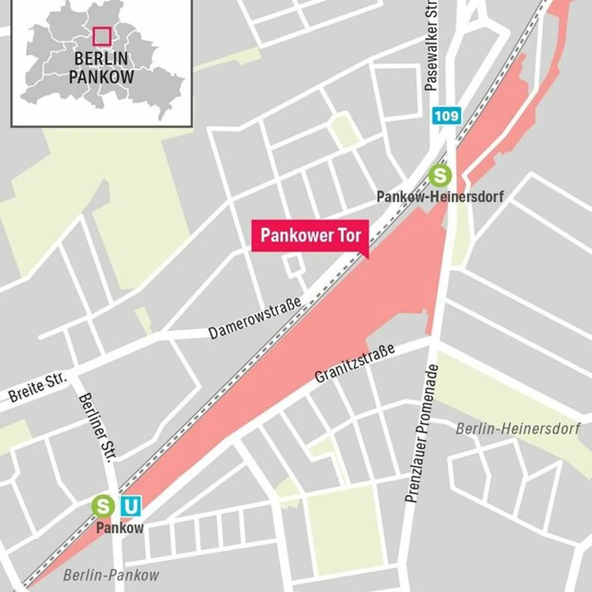 Es geht beim Pankower Tor um nicht weniger als das derzeit größte städtebauliche Projekt in Berlin. Auf dem ehemaligen Güter- und Rangierbahnhof soll zwischen den S-Bahn-Stationen Pankow und Pankow-Heinersdorf ein neues Stadtquartier entstehen. 2.000 Wohnungen, eine Schule, zwei Kitas, Einkaufen, Erschließung durch eine Tram, der Radschnellweg Panke-Trail – und natürlich ein Möbelhaus.