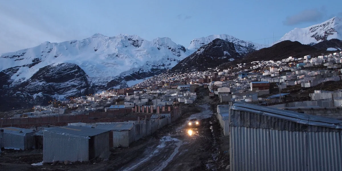 Die Stadt wirkt wie ein Ufo, das aus Versehen in der kargen Landschaft der peruanischen Anden gelandet ist. Kleine Wellblechhütten ziehen sich den Hang hinauf in Richtung Gletscher. Sie haben nur einen Raum, keine Küche, kein Bad – und keine Isolierung. Dabei wird es vor allem nachts eisig kalt, auch mal 20 Grad unter Null. Im Zentrum gibt es auch größere Häuser, ineinander verschachtelt, aus Backstein erbaut, unverputzt, bis zu sieben Stockwerke hoch.