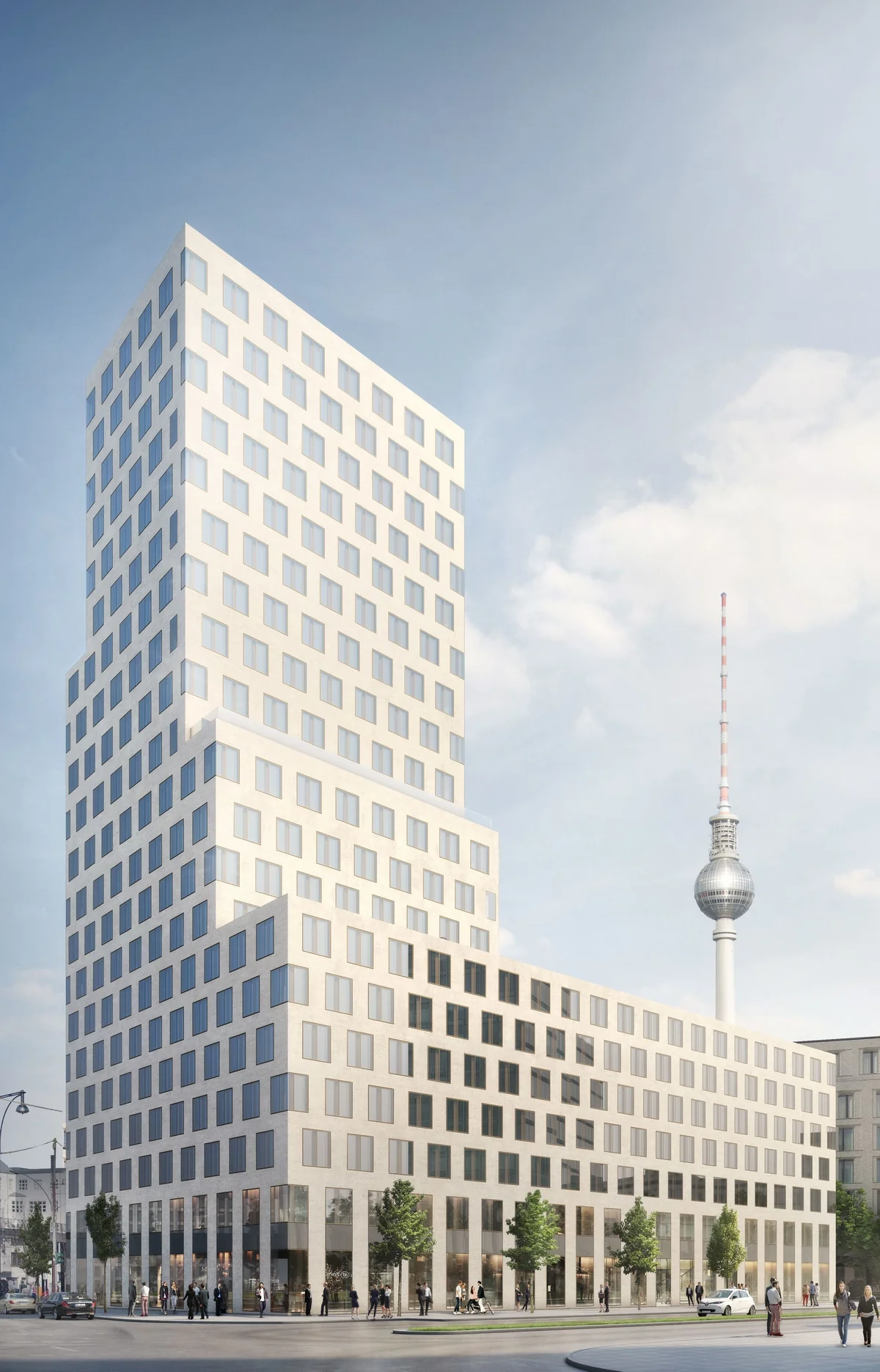 In dem 36 Meter hohen Sockel, der weit auf den Alexanderplatz hineinreichen wird, sollen allerdings neben Einzelhandelsflächen auch einige Wohnungen entstehen.