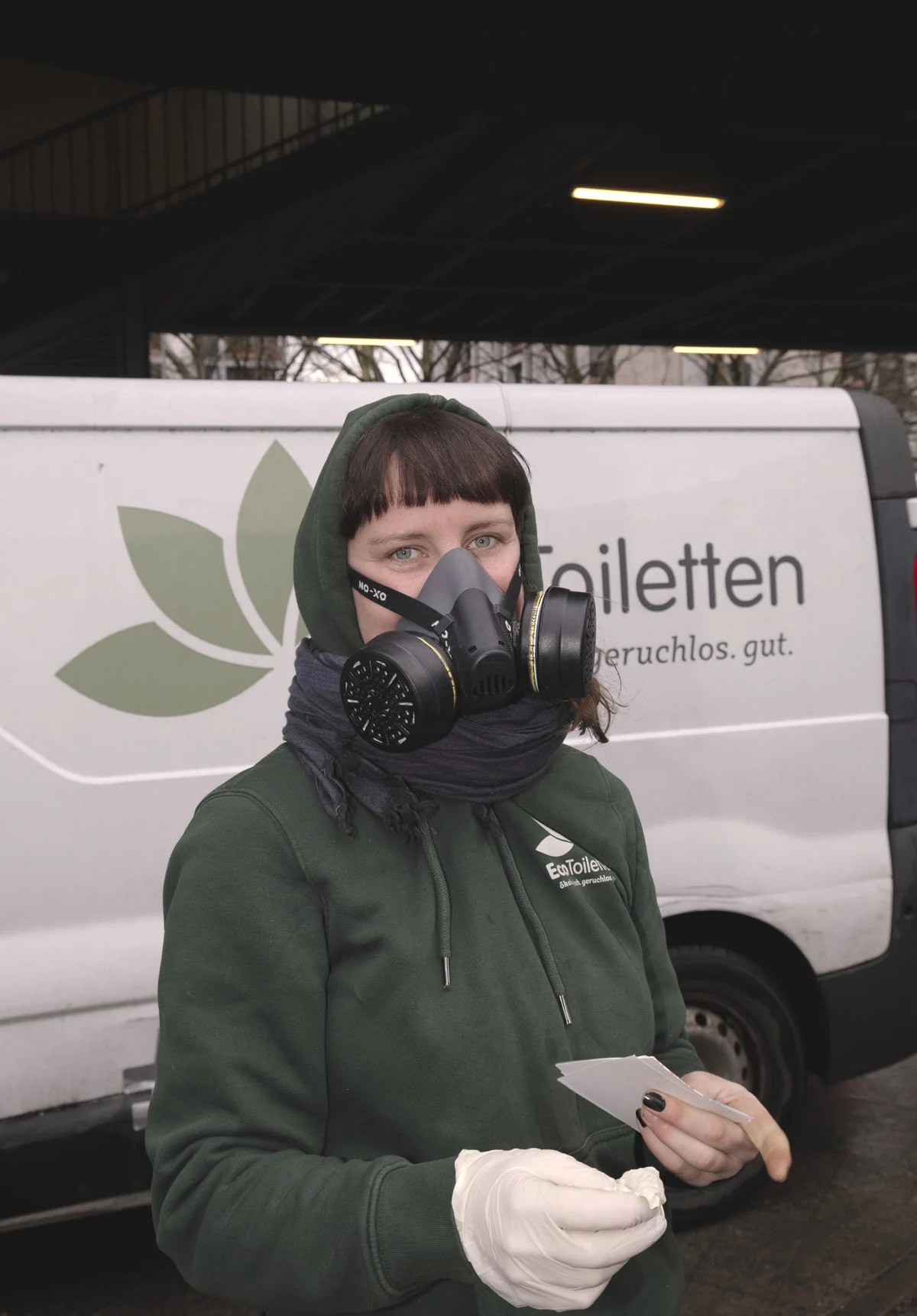Ausgestattet mit einer Atemschutzmaske mit zwei großen Filtern an den Seiten checkt die ausgebildete Zimmerin, ob alles funktioniert. Sie prüft die Füllmenge der Behälter, ob das Licht noch funktioniert, ausreichend Desinfektionsmittel vorhanden ist oder die Türen schließen. Auch für die Entfernung von Graffiti ist sie zuständig. Die werden mit GHB von Wänden und Fußböden gelöst, eine Substanz, die auch für K.-o.-Tropfen missbraucht wird. Daher auch die Schutzmaske, erklärt sie – und natürlich wegen der Fäkalien. Gereinigt wird hier zweimal am Tag, allerdings von anderen Mitarbeiter*innen.