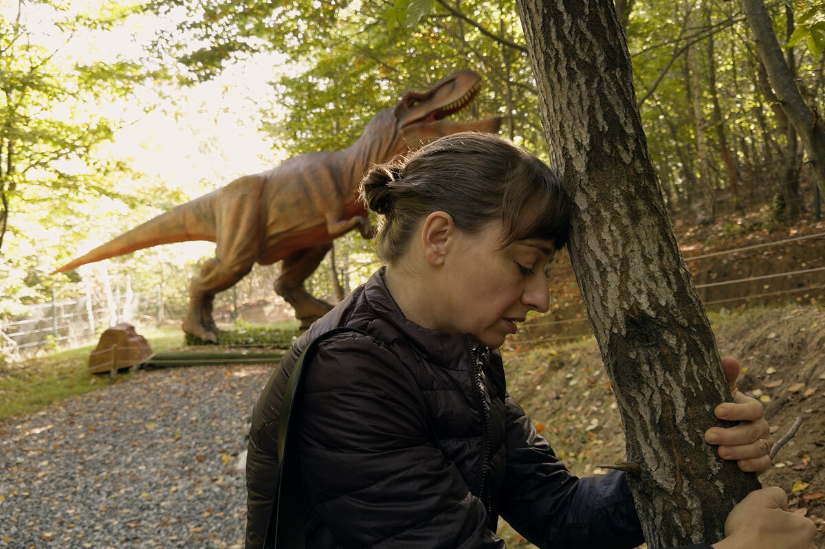 Vor sich hin murmelnd, sammelt ein Mann, der bessere Tage in seinem Leben gesehen haben dürfte, in einem Wald Dinge auf, die Menschen weggeworfen haben – Pfand, offene Snacktüten. Als er einen Hohlweg herunterkommt und Dinge in die prallen Taschen über seiner Schulter stopft, brüllt neben ihm ein mechanischer Dinosaurier. Er ignoriert die mechanischen Tiere. Eine Seilbahn bringt ihn zurück an eine Zufahrtsstraße.