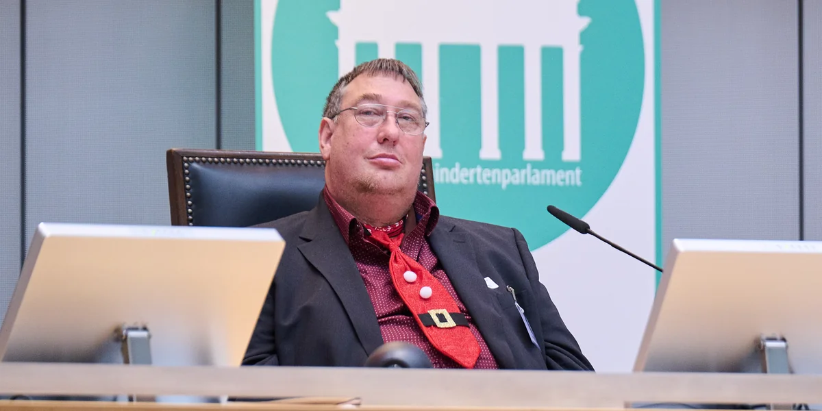 Ein solches Kleidungsstück wurde auf der Präsidiumsbank des Abgeordnetenhauses vermutlich noch nie gesichtet: Christian Specht, Initiator des Berliner Behindertenparlaments und dessen Präsident bei der Sitzung am Samstag, trug eine Weihnachtsmann-Krawatte. Festlich zumute war dem altgedienten Aktivisten auf jeden Fall, denn er hatte 2018 den Anstoß dazu gegeben, das in Bremen entwickelte Format an die Spree zu holen. Nun wurde sein unermüdliches Netzwerken von Erfolg gekrönt.