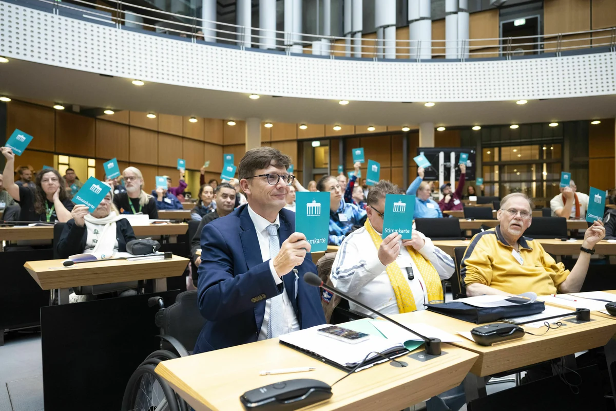 Zum vierten Mal tagt das Berliner Behindertenparlament im Abgeordnetenhaus. Das ganze Jahr über haben Berliner:innen mit Beeinträchtigungen in Fokusgruppen Vorschläge für mehr Inklusion in verschiedenen Lebensbereichen erarbeitet. Am Parlamentstag stimmen dann fast 120 Delegierte, die aus den Fokusgruppen und ausgeloste Bewerber:innen stammen, über die Anträge ab. Anschließend werden diese dem Senat übergeben.