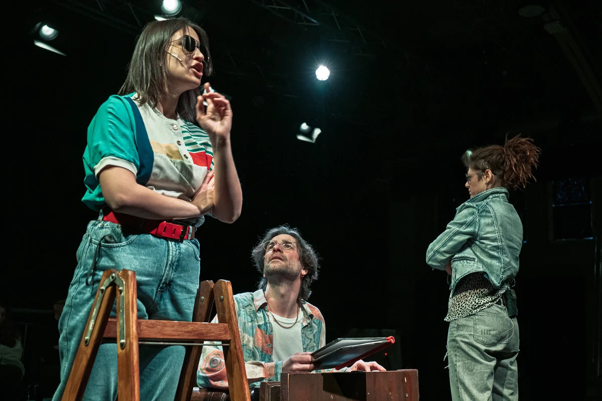 „Jetzt mal Real Talk: Ich geh’ nicht auf die Bühne“, raunt es aus den hinteren Reihen, während sich der Saal bis auf den letzten Platz füllt. Die Bühne, das sind ansteigende Podeste und leere Stühle, wie ein Spiegel des Zuschauerraums, in den man von gegenüber blickt. Eine stumme Aufforderung. Zögerlich nehmen Vereinzelte dann doch auf der Bühne Platz, umspielt von den drei Schauspieler:innen des Abends, die umtriebig bunte Plastikbecher verteilen.
