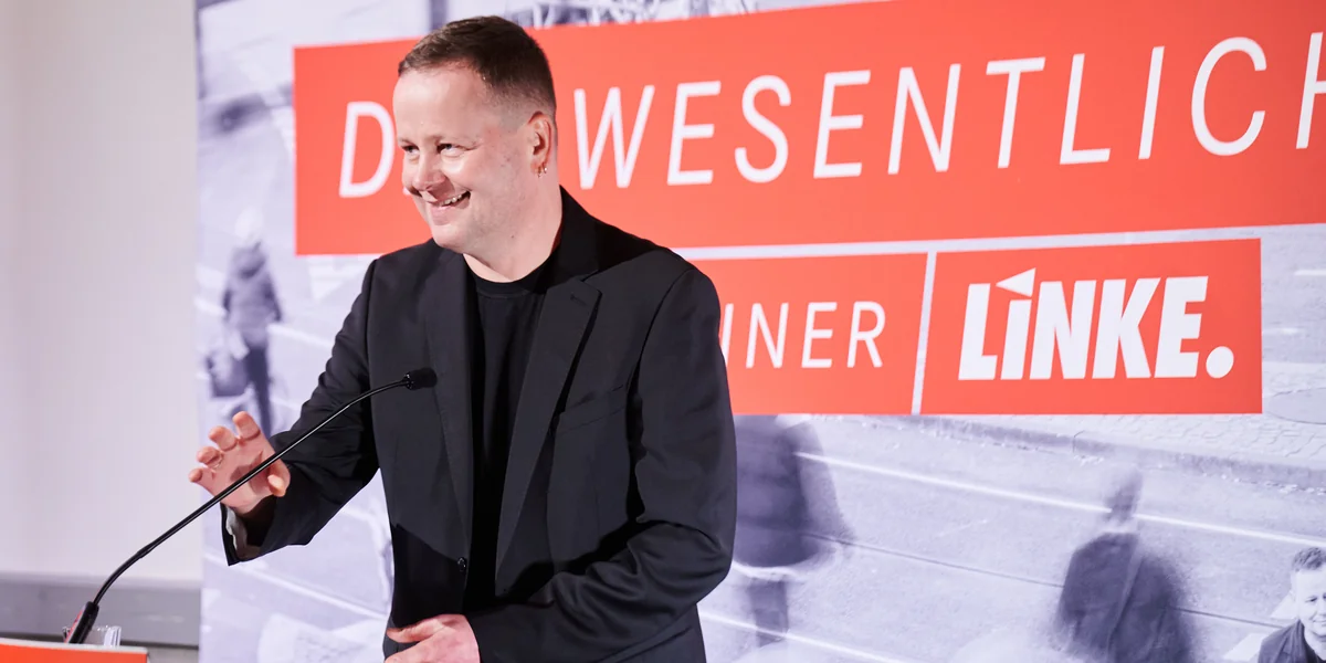 Die Delegierten im Festsaal sind tatsächlich aufgewärmt, als die eigentlich zentrale Figur der Partei in diesem Wahlkampf Schubert ans Rednerpult folgt. Die war auf dem schwarz-weißen Großplakat im Hintergrund durchaus schon präsent, aber nun steht Klaus Lederer, der Spitzenkandidat für die Wahlwiederholung am 12. Februar, in echt am Mikro. Und leidet ein bisschen unter der geballten Energie seiner Landesvorsitzenden, wie eine Großband, die emotional nicht an ihre Vorgruppe ran kommt.