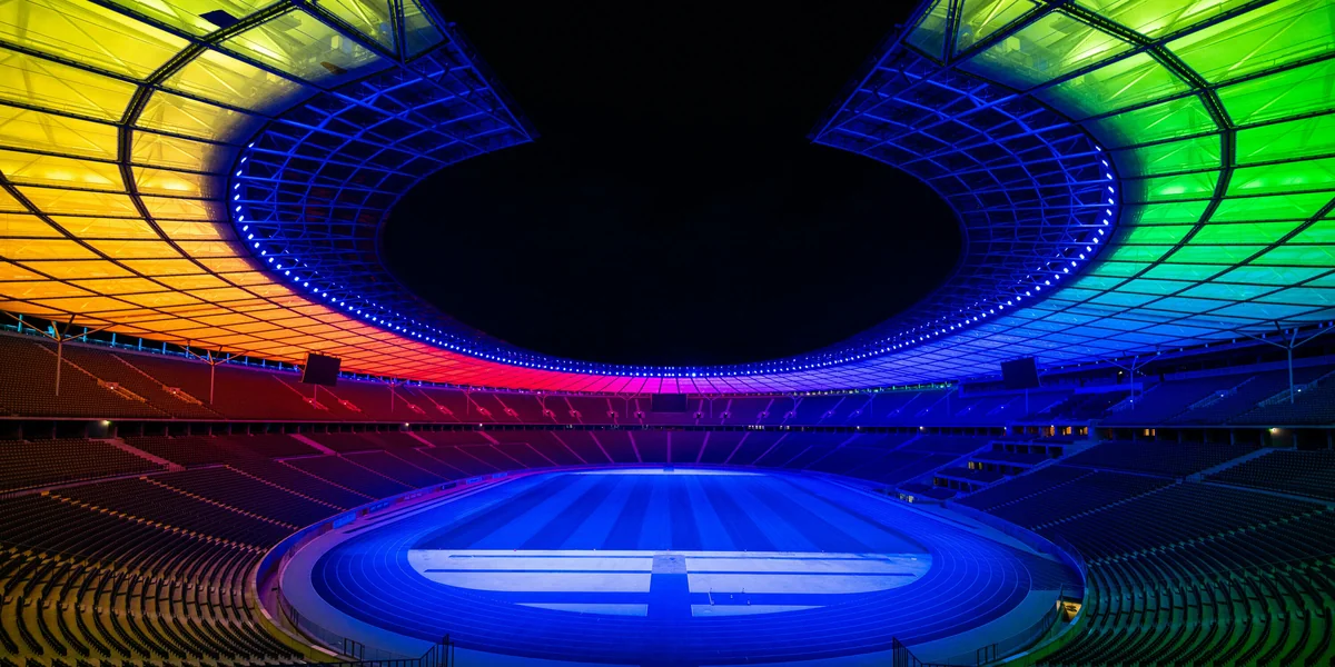 Berliner Olympiastadion als buntes Zeichen: Allerorten Outing mit Symbolpolitik