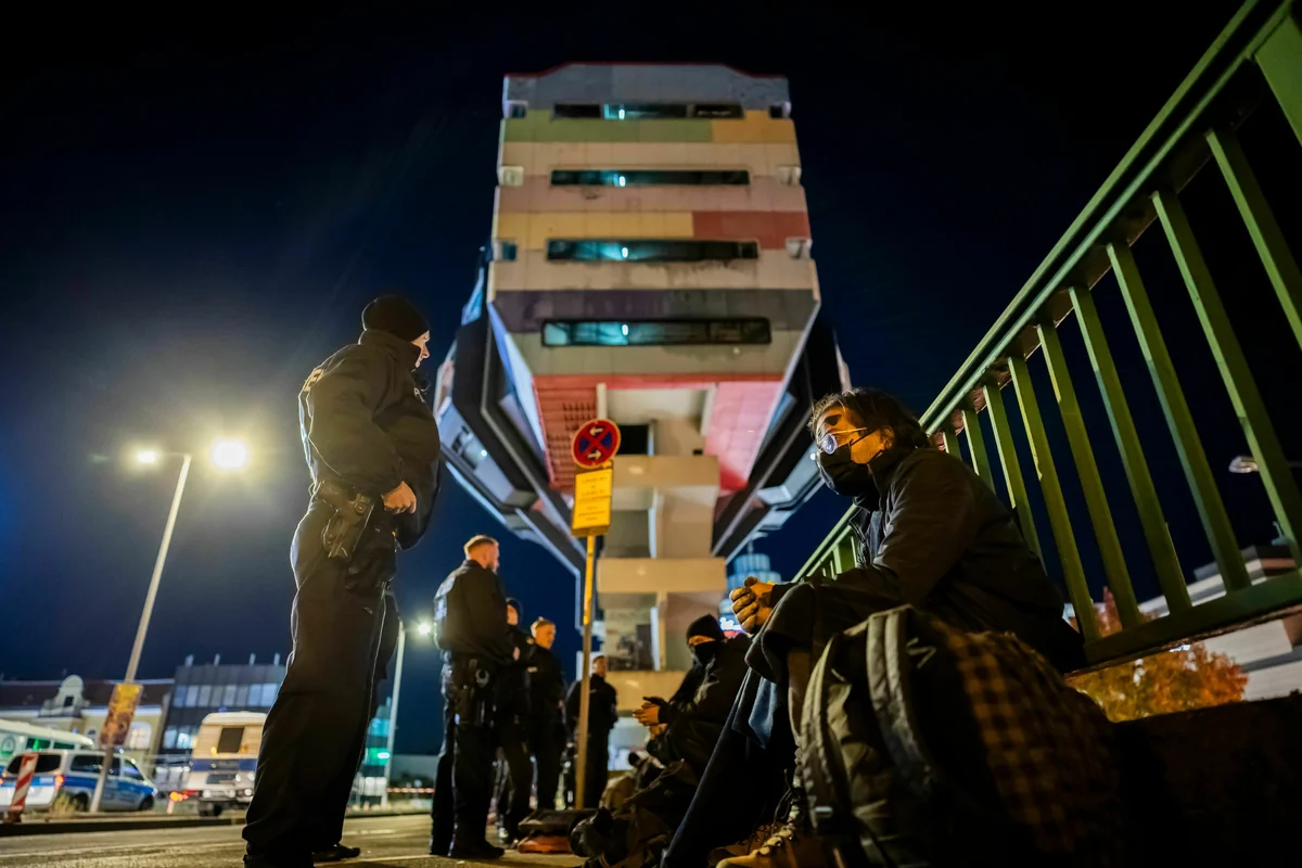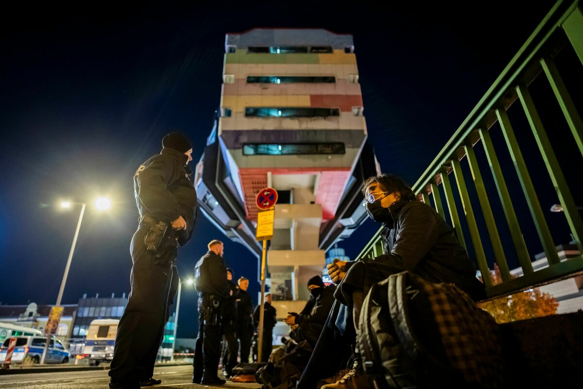 „Im und am Objekt haben wir insgesamt 15 vermummte Personen festgenommen“, teilte die Polizei am Abend auf der Plattform X mit. Die Identifizierungsmaßnahmen zogen sich demnach in die Länge, da einige der Aktivisten ihre Fingerkuppen verklebt hatten.