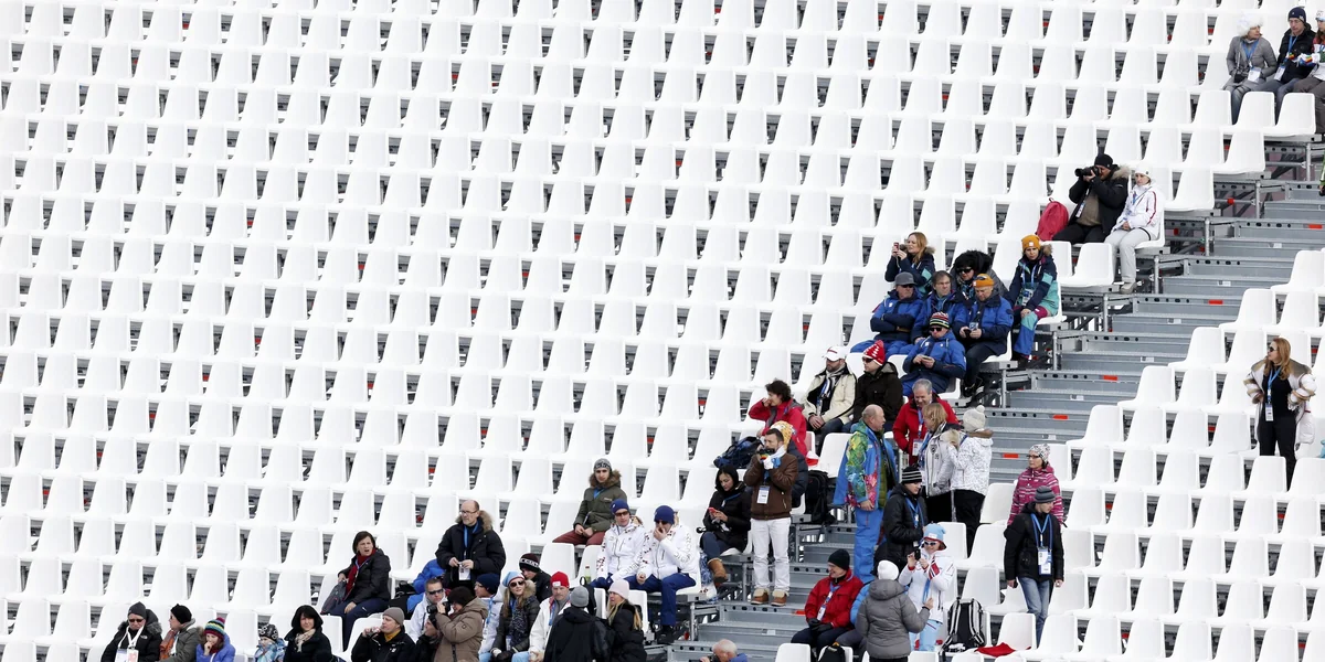 Auch bei den Übertragungen im Fernsehen sind auf den Zuschauertribünen und an den für Milliardensummen gebauten Sportanlagen kaum Zuschauer zu sehen. Leer waren auch die Plätze im Zentrum von Sotschi, wo Zuschauer auf umzäunten Flächen nur vereinzelt die Wettbewerbe auf Großbildschirmen verfolgten.