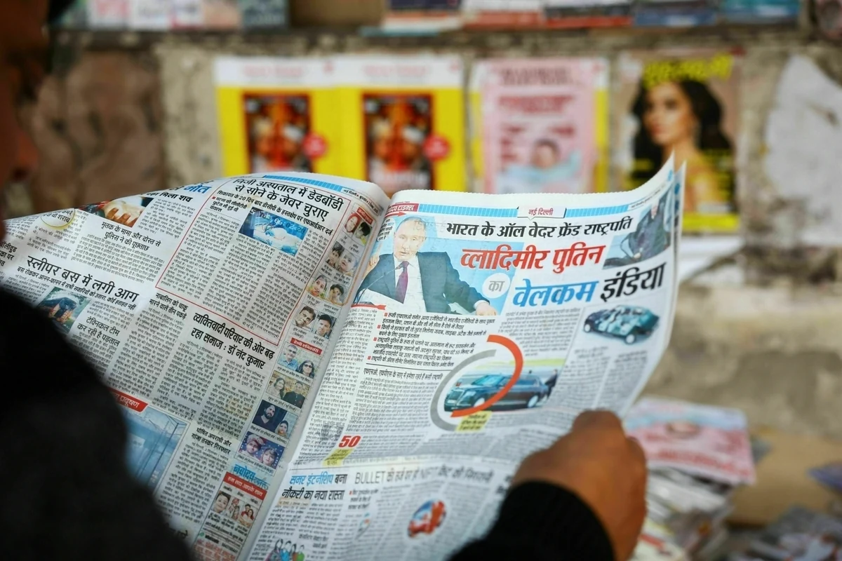 Noch bevor Wladimir Putin am Donnerstag erstmals seit 2021 wieder in Indiens Hauptstadt Delhi landen wird, steht er bereits im Fokus indischer Medien. Einer der größten englischsprachigen Sender wirbt für ein Exklusivinterview mit dem Kremlchef. Zugleich wirbt in den Metropolen der neue Ableger von Moskaus Propagandasenders Russia Today, der am Freitag startet.