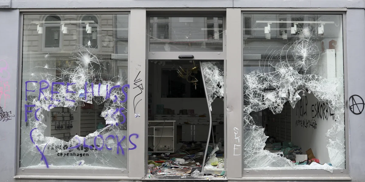 Vor dem Rewe-Markt, in dem sich sonst die Szene gern bis spät in die Nacht versorgt, steht der stellvertretende Filialleiter vor dem halb hochschobenen Gitter. „Das haben die einfach hochgeschoben“, sagt er. Drinnen sind die Regale komplett leergeräumt und zum Teil zerstört. Im Lager, oben im ersten Stock, sei Feuer gelegt worden. Darüber seien Wohnungen. „Das hätte schlimmer ausgehen können“, sagt der Mann.