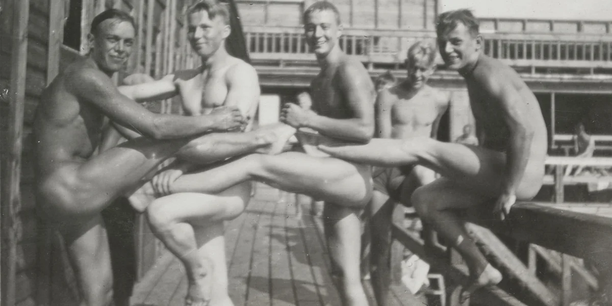 Weil aber diese Zeiten auch in westlichen Kontexten nicht schwulenfreundlich waren, sondern, im Hinblick auf Homosexuelles, eisern schweigend, konnten diese Bilder so geknipst werden: Da das Undenkbare unaussprechlich – und damit im bürgerlichen Sinne unlebbar – war, konnte es dokumentiert werden: soldatische Männer im erotisierenden, nackten Modus miteinander – es waren ja alles nur Buddies, die besten Kumpels, an die man sich im Schützengraben, angstschlotternd, schmiegen konnte.