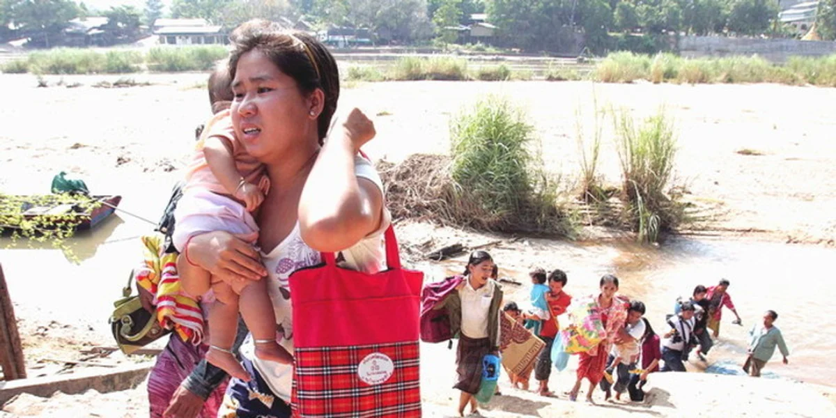 Nach dem Beginn der Kämpfe am Montag flohen nach Angaben des Gouverneurs der thailändischen Provinz Tak, Samart Loyfah, rund 10.000 Menschen nach Thailand, die meisten von ihnen Frauen und Kinder. Die Menschen hätten mit Booten den Grenzfluss überquert. Rund 150 Kilometer weiter südlich passierten weitere tausend Flüchtlinge die Grenze, wie ein Vertreter des thailändischen Bezirks Sangkhla Buri sagte. Auch dort war es zuvor zu Gefechten zwischen Rebellen und Soldaten gekommen. Ein Vertreter der thailändischen Armee sagte, bei den Kämpfen habe eine Rakete die thailändische Stadt Mae Sot getroffen. Dabei seien fünf Menschen verletzt worden.