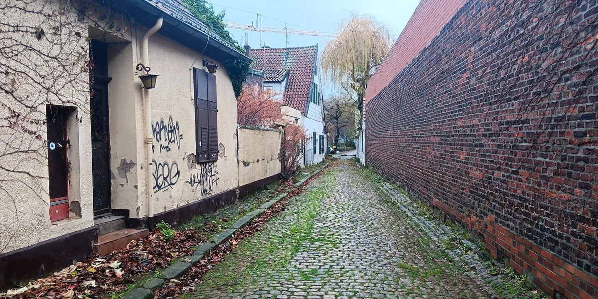 „Man versteht das hier in der Region einfach als Synonym für einen Puff“, sagt der 72-Jährige und biegt in die Sackgasse mit ihrem Kopfsteinpflaster aus dem vorletzten Jahrhundert ein. Am Ende der Gasse sorgt links eine fünf Meter hohe Backsteinmauer für Beklemmung, rechts stehen eng aneinander die verrotteten kleinen Fachwerkhäuser, die seit dem vorletzten Jahrhundert ausschließlich als Bordelle genutzt wurden.