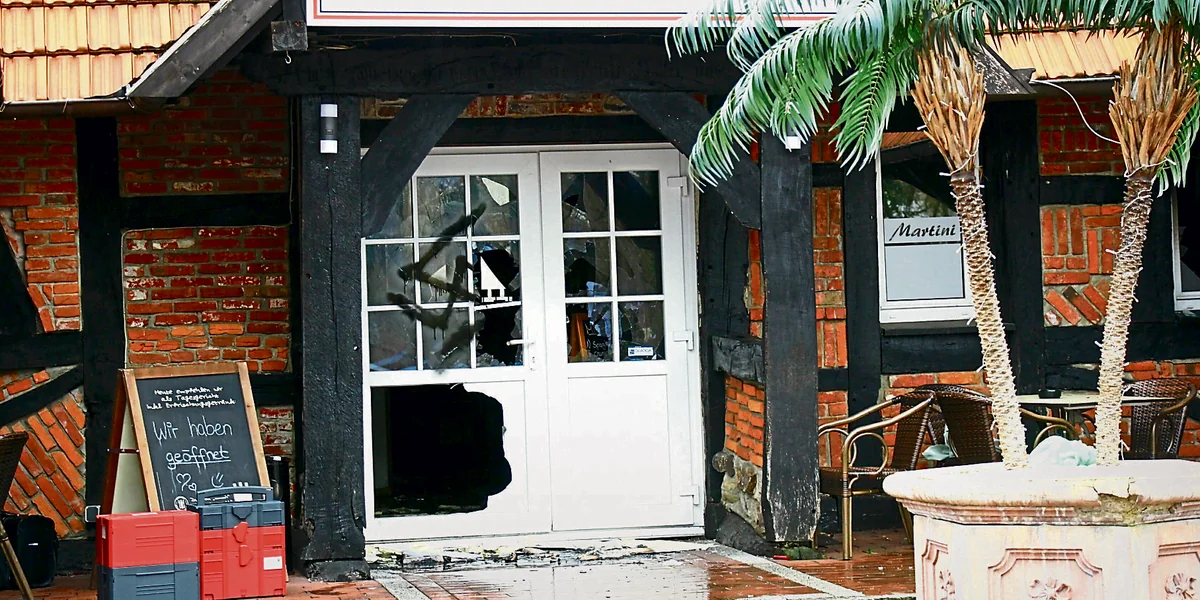 Die Scheiben der weißen Eingangstür zum Restaurant „Martini“ sind zertrümmert, ein schwarzes Hakenkreuz darauf gesprüht, ein weiteres an anderer Stelle. Am frühen Donnerstagmorgen hat es in der niedersächsischen Stadt Syke einen Brandanschlag gegeben. „Wir gehen von einem fremdenfeindlichen Hintergrund aus“, sagt Lene Steinbrecher, Pressesprecherin der Polizei Diepholz.