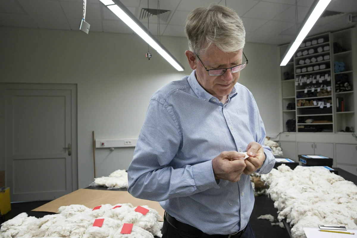 Der ist fast enttäuschend schlicht: Auf zwei Reihen Tischen mit Kunststoffplatten liegen, jeweils durch Packpapier getrennt, Lagen von weißlichen Wuscheln.