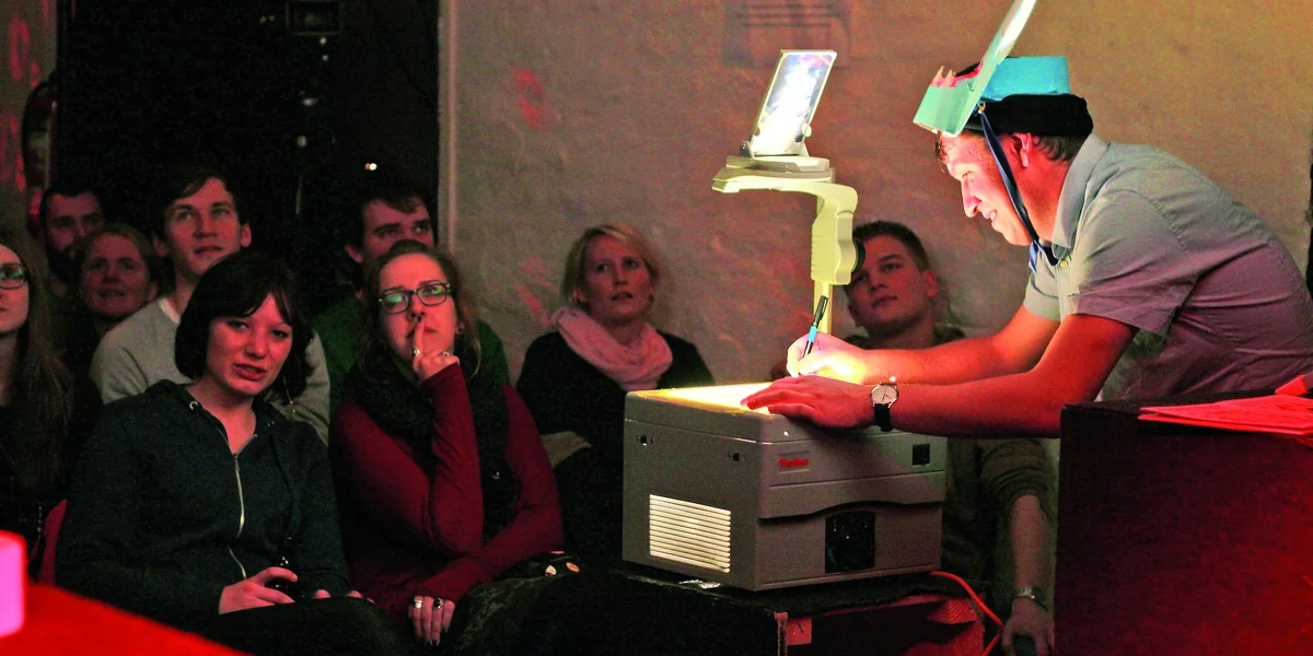 Das Spaß-Format „Comic-Battle“, bei dem sich zwei maskierte Zeichner unter Zeitdruck auf Overheadprojektoren einen Malwettbewerb liefern, öffnet die Darstellungsform einem neuen – und amüsierten – Publikum.