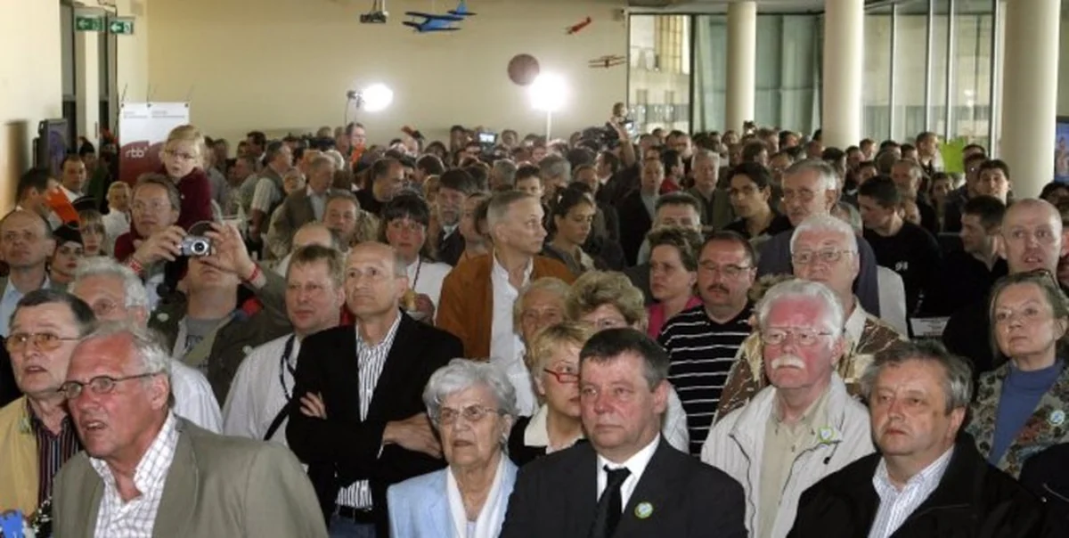 Etwas sachlicher fallen die Reaktionen im DGB-Haus aus. Die hier versammelten Flughafengegner müssen aber auch auf die emotionalisierende Verkündung des Abstimmungsergebnisses verzichten. Denn im entscheidenden Moment fallen Ton und Bild aus. "Bürgerinitiativentechnik eben", entschuldigt sich der Mann an den Laptops.