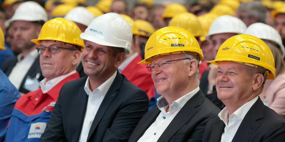 Zur Rettung der angeschlagenen Meyer-Werft im Emsland wollen der Bund und das Land Niedersachsen die Werft mehrheitlich übernehmen. Niedersachsens Wirtschaftsminister Olaf Lies (SPD) rechtfertigte das Engagement mit der volkswirtschaftlichen Bedeutung der Werft, die ihr Hauptgeschäft mit Kreuzfahrtschiffen macht. 20.000 Arbeitsplätze in Deutschland hingen direkt und indirekt von der Werft ab, sagte Lies in einer Regierungserklärung am Mittwoch. Die Wettbewerbsfähigkeit und der Ruf des gesamten Schiffbaustandorts Deutschland stünden auf dem Spiel. „Der Staat kann dabei nicht Zuschauer sein“, sagte der Minister. Bundeskanzler Olaf Scholz hatte schon bei einer Betriebsversammlung in der vergangenen Woche versichert: „Wir lassen die Werft nicht allein.“