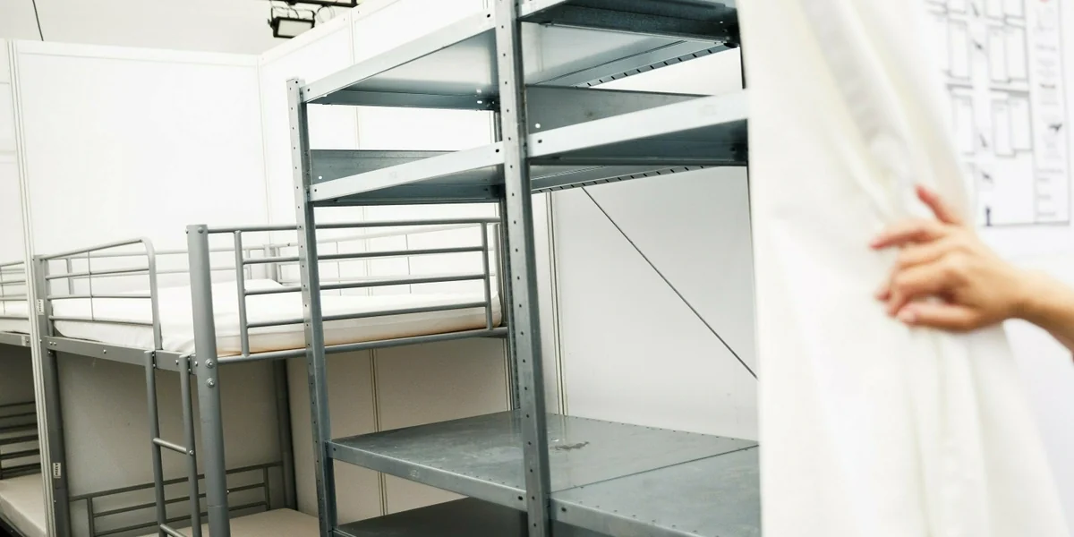 Doch weil es viel zu wenig Wohnungen gibt in der Stadt oder „richtige“ Heimplätze, die humanitären Standards genügen, und weil immer neue Flüchtlinge nach Berlin kommen – 2024 waren es bis Ende Mai rund 4.000 Asylbewerber und 4.200 Ukrainer –, leben die Menschen immer länger in Tegel. Im Schnitt 200 Tage, manche schon über ein Jahr. Die taz hat mit einer jungen Frau aus der Ukraine gesprochen, die seit Februar 2023 in Tegel ist. „Ich komme nur zum Schlafen her“, sagt die Studentin, die aus Angst vor Ärger ihren Namen nicht in der Zeitung lesen will. Tagsüber sei sie in Bibliotheken, um zu lernen, sie studiere weiter online an einer ukrainischen Uni. Um etwas Intimität in der Wabe zu bekommen, hängt sie manchmal ein Tuch an ihrem Bett auf. „Aber das ist verboten, die Betreuer sagen wegen Brandschutz.“