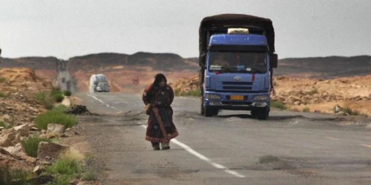Brütende Hitze, weit und breit kein Dorf, kein Haus, nur Geröll und ab und zu verdörrte Steppengrasbüschel. Am Horizont eine Silhouette. Ein Baum, ein Verkehrsschild? Nein, jemand wandert auf der Straße Richtung Süden, in Richtung nirgendwo.