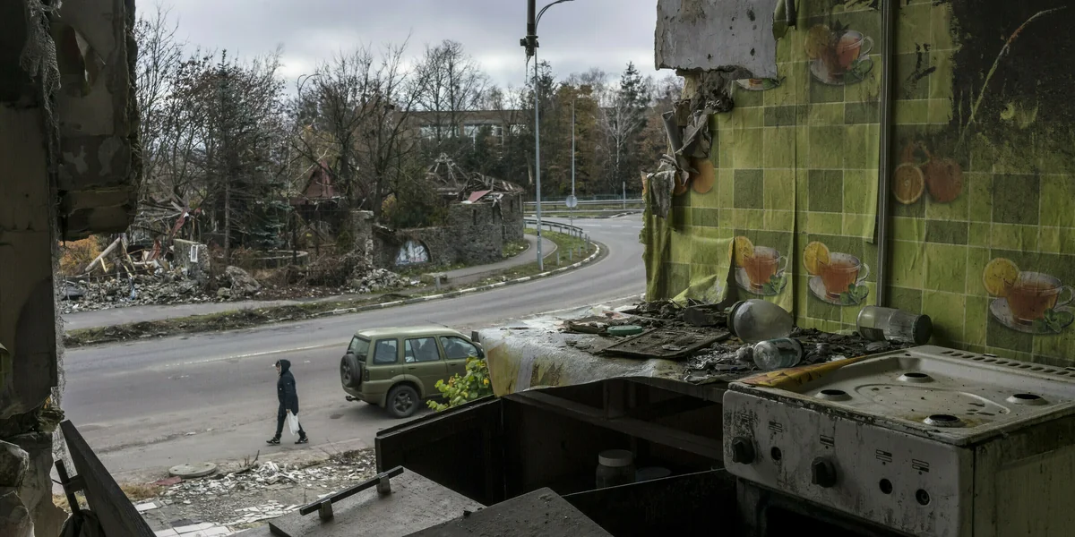 Butscha: Das sei für ihn immer ein Ort gewesen, der sich einerseits durch Datschen, Fichtenwald und Seen, andererseits aber auch durch bourgeoise Wohnkomplexe auszeichnete. Nach 2014 entstanden hier neue Wohnkomplexe unter so vielverheißenden Namen wie „Rich Town“ oder „Green Life“ – besonders Geflüchtete aus den umkämpften Gebieten in der Ostukraine siedelten sich an. Jetzt, da Orte wie Irpin stark zerstört sind, denken internationale Architekten bereits über einen umfassenden Wiederaufbau der Stadt nach, der zum Modell für andere massiv zerstörte Kommunen wie Mariupol, Charkiw oder Cherson werden könnte.