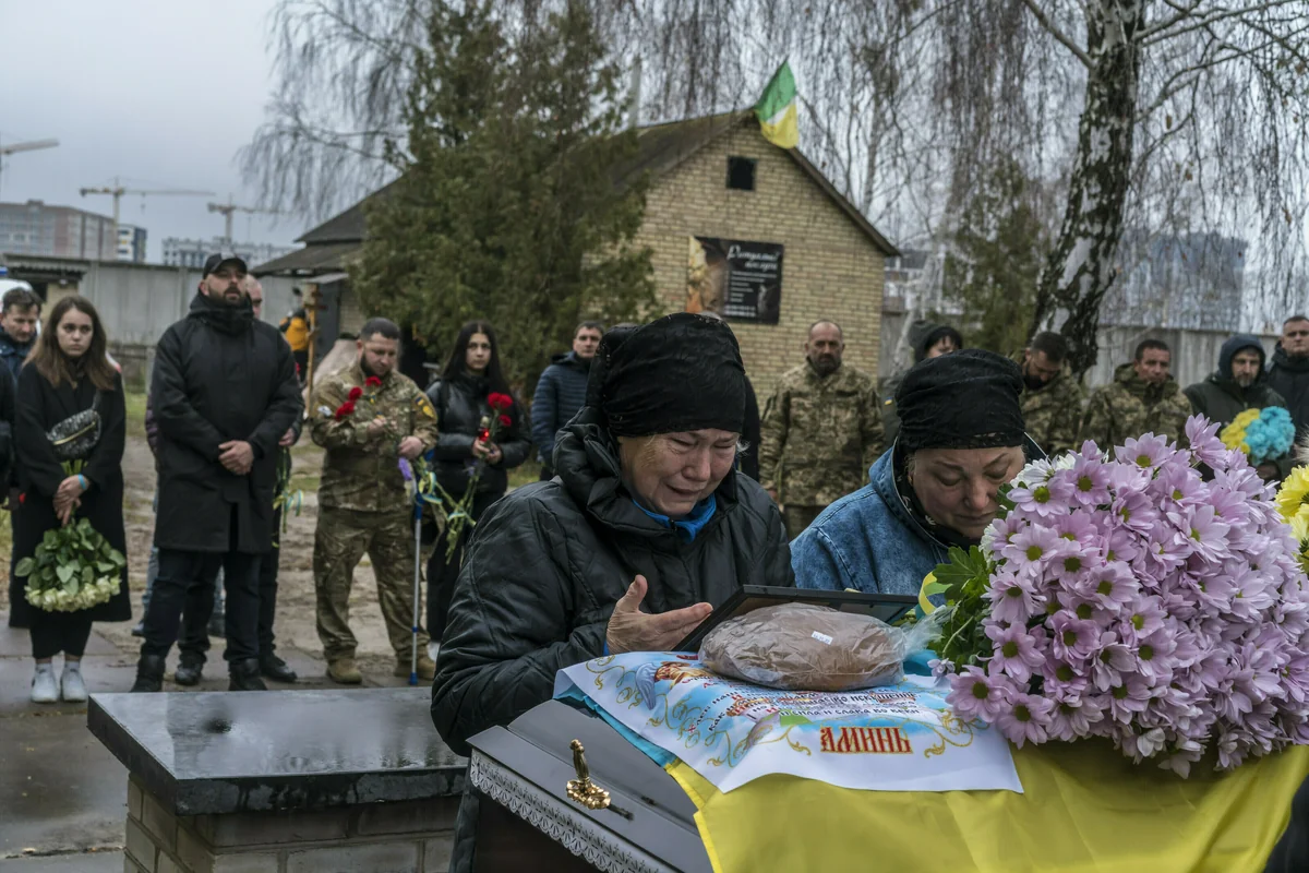 „Wir waren diejenigen, die diese Gräber ausgehoben und die Leichen bestattet haben. Normale Leute – nicht die CIA oder Special Security Forces“, sagt er. In diesem Abschnitt des am Ortsrand gelegenen Friedhofs fehlen die Namen – die Kreuze sind lediglich mit Nummern, Verweisen auf den Fundort und Aufschriften „Hier ruht …“ versehen. Dies sei ein Ort, um der Toten zu gedenken und die ukrainischen Verteidiger zu ehren. Die Namenlosen stammen aus einem Massengrab auf dem Gelände der St.-Andreas-Kirche in Butscha.
