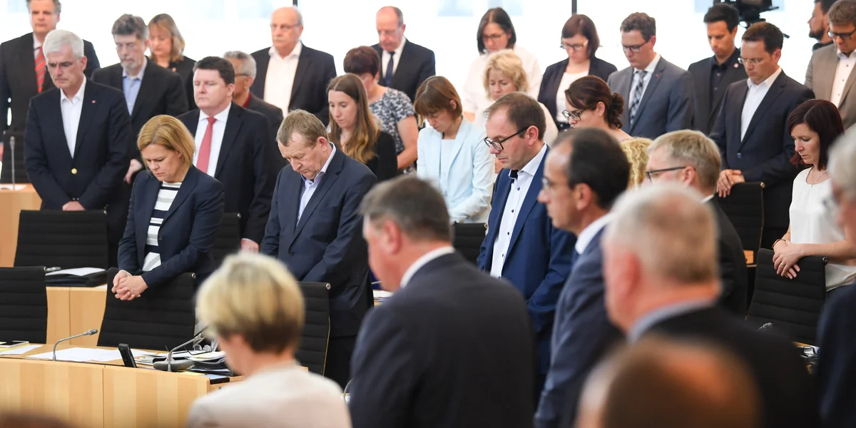Wiesbaden, der Hessische Landtag an diesem Mittwoch: Plenardebatte zum Gedenken an Walter Lübcke und über die Folgen des Mordes. CDU, Grüne, SPD und die FDP haben einen Entschließungsantrag verabschiedet, in dem steht: „Die Möglichkeit eines politischen Mordes ist eine Zäsur und eine neue Dimension rechter Gewalt.“ Die Linke hat einen eigenen Antrag eingebracht. „Wir haben nicht nur keine Angst“, sagt Volker Bouffier, Ministerpräsident der CDU, im Plenum „sondern wir werden auch keinen Millimeter weichen, wenn es um die Verteidigung der freiheitlichen Gesellschaft geht.“ Applaus.