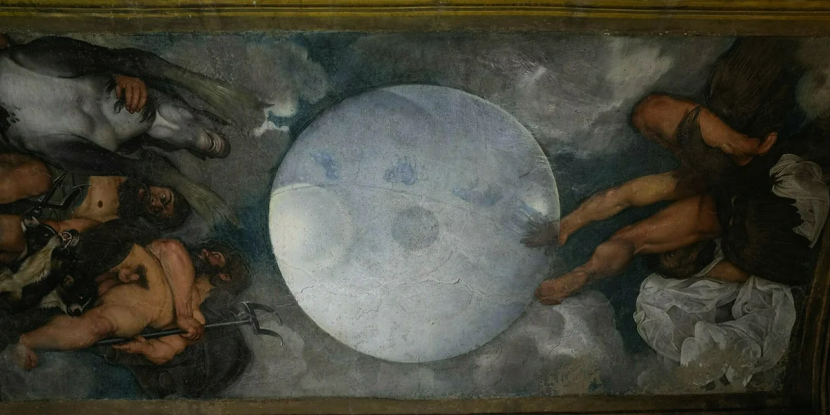 Deshalb schien es schon eine Sensation, dass in Rom ein einzigartiges Deckengemälde von Michelangelo Merisi da Caravaggio zur Versteigerung kam. In extremer Untersicht sieht man darauf Pluto, den antiken Gott der Unterwelt, der mit Neptun und Jupiter um eine Weltkugel in der Mitte kreist. Erst in den 1960ern wurde das Bild unter einer Übermalung entdeckt in einem Raum, der heute ein Flur ist, zur Zeit der Bemalung aber als Alchemistenkammer galt.