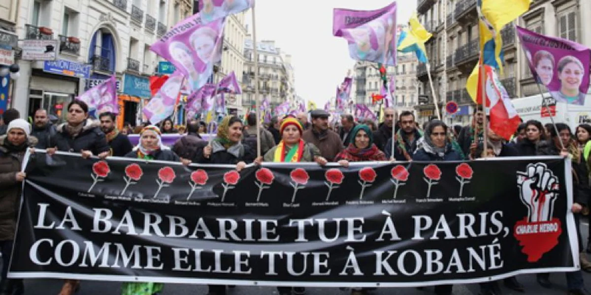 Am Freitag, zwei Tage nach dem Angriff auf Charlie Hebdo und zwei Tage vor dem großen Trauermarsch, demonstrierten einige tausend Kurden in Paris, um an einen anderes in Paris verübtes Verbrechen zu erinnern: die Ermordung der PKK-Mitgründerin Sakine Cansız sowie ihrer Gefärtinnen Fidan Doğan und Leyla Şaylemez. Die drei waren am 9. Januar 2013 erschossen worden.