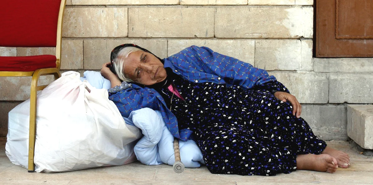 Die Flüchtlinge versuchen im Vorhof der Kirche, das Beste aus ihrer Lage zu machen und sich zu organisieren. Neben dem Kirchenportal gibt es sogar einen Friseur: eine Plastikplane, ein Plastikstuhl und einen Mann, der mit der Schere in der Hand auf seinen nächsten Kunden wartet. Daneben sitzt Bassem Boulus, der aus dem Dorf Karakousch hierher geflüchtet und von seiner Erfahrung sichtlich gezeichnet ist. Er sieht müde aus. Er erzählt eine dieser Geschichten, von denen es hier hunderte gibt.