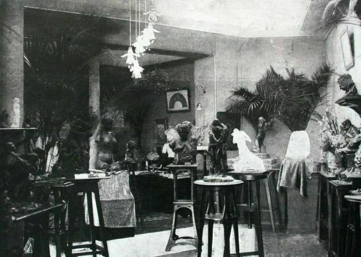 Anhand eines alten Fotos hat man im Paula Modersohn-Becker Museum nachempfunden, wie Bernhard Hoetger und Camille Claudel 1905 in der Galerie Blot präsentiert waren, mit Art-Déco-Sockeln und Fächerpalme.