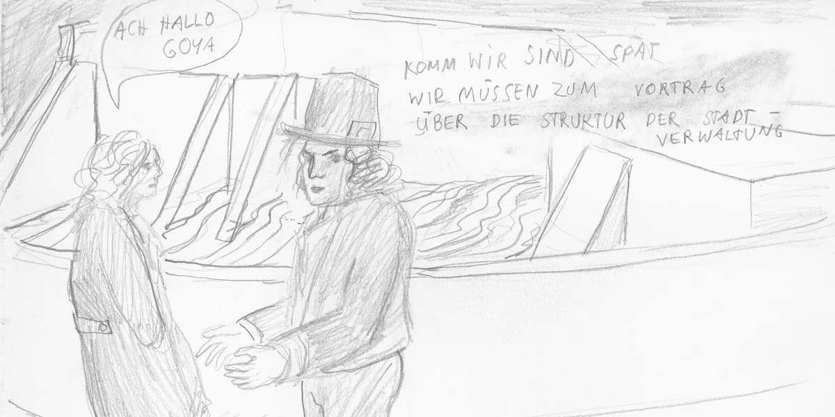 So spielt der 1828 verstorbene spanische Maler und Grafiker Francisco Goya keine geringe Rolle im Leben ihrer unglücklichen Hauptfigur. Warum Goya? „Es ist erstaunlich“, sagt von Wulffen, „auf wie vielen verschiedenen Ebenen der unterwegs war.“ Sie schätzt Goya als Hofmaler, aber auch als politischen und sozialkritischen Zeichner und Grafiker. Die Desastres de la guerra, die Capriccios oder die Skizzen zu ihnen seien in ihrer Drastik und Direktheit „so ziemlich das Bewegendste und Virtuoseste“ was je gezeichnet und radiert wurde, sagt sie.