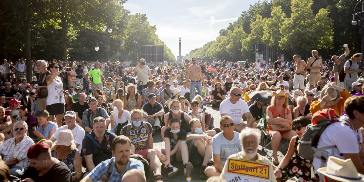20.000 Menschen demonstrieren gegen die Coronapolitik – ohne Masken und Abstand. Neben Impfgegnern sind auch extrem rechte Gruppen auf der Straße.