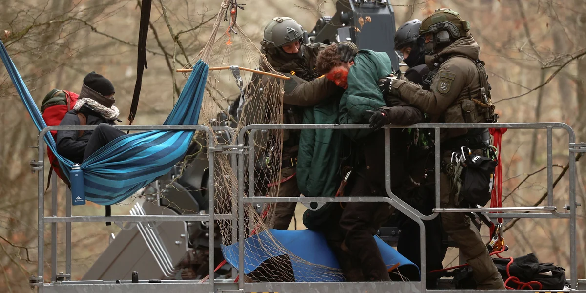 Seit dem Dienstag kreischen nun die Sägen vor Ort. Im Herrenwald, der ein Schutzgebiet der europäischen Schutzkategorie „Fauna-Flora-Habitat“ ist, und im Maulbacher Forst sind die Rodungsarbeiten schon abgeschlossen – trotz Protest. Jetzt läuft der Showdown im Dannenröder Forst. Die ersten Bäume sind bereits gefallen. Die Arbeiten kommen jedoch nur mühsam voran, denn die Klimaaktivist:innen haben noch nicht aufgegeben, obwohl es nur noch um ein vergleichsweise kleines Stück Wald geht. Hundertschaften der Polizei sind vor Ort, um die Waldbesetzer:innen aus den Baumhäusern zu holen.