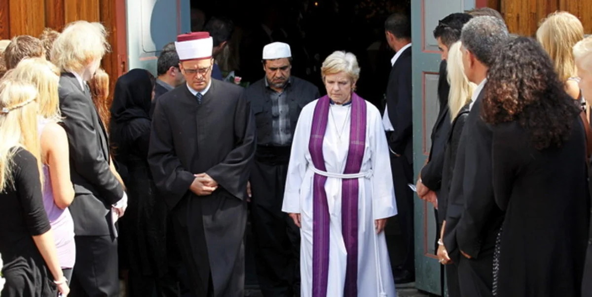 Elf Tage nach den Attentaten in Norwegen dieses Bild: Der norwegische Ministerpräsident Jens Stoltenberg nimmt an der Trauerfeier für die kurdischstämmige Norwegerin Bano Rashid in einer Moschee teil. Da stand er, der norwegische Sozialdemokrat, bei denen, die der Attentäter gemeint hatte, die Muslime.
